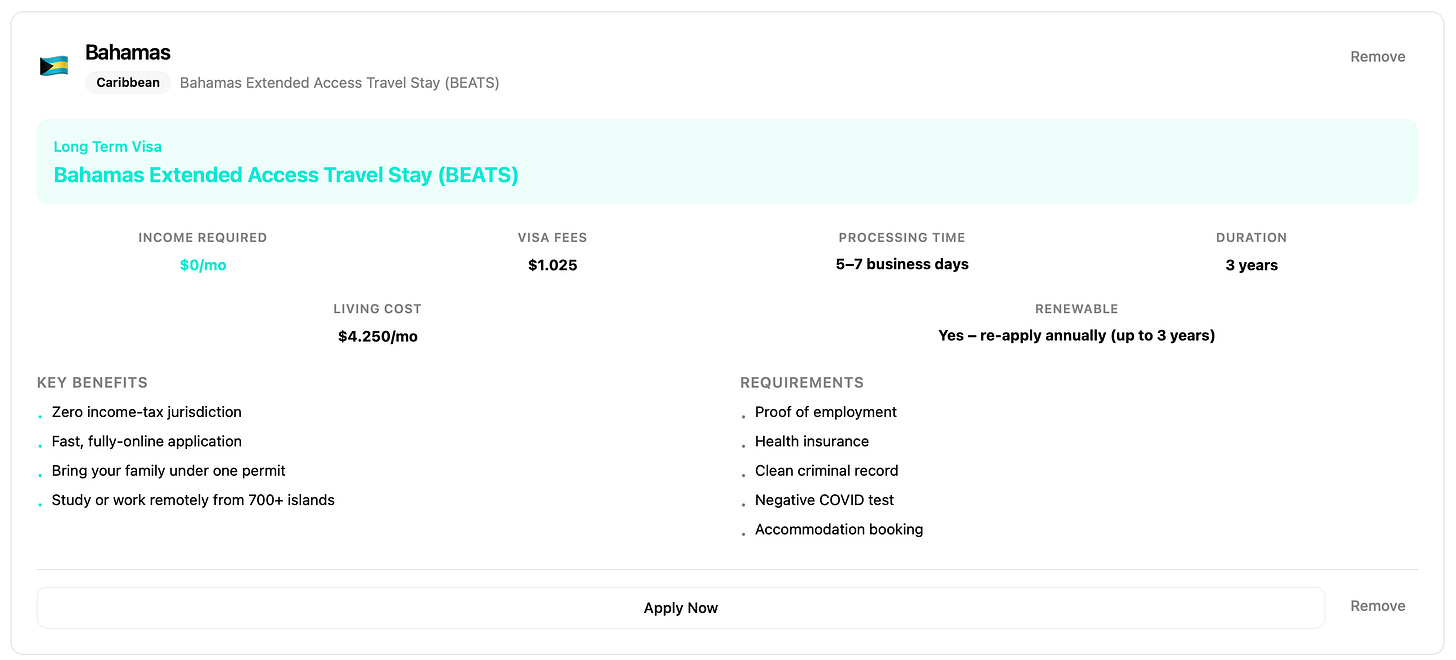 This is such a great tool! Thanks for building it and sharing it. I know this is primarily built for people still working. But as mainly early retired nomads, it would be awesome if you included an option to choose more passive income visas. I know a lot of other nomads would really be interested in that as well.