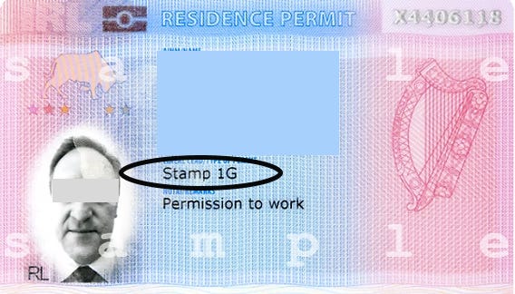 Stamp 1 and Stamp 1G are common starting points. Stamp 4 is the long-term goal for many people. The card pictured is Stamp 1G, which lets graduates and certain spouses work in Ireland without an employment permit.