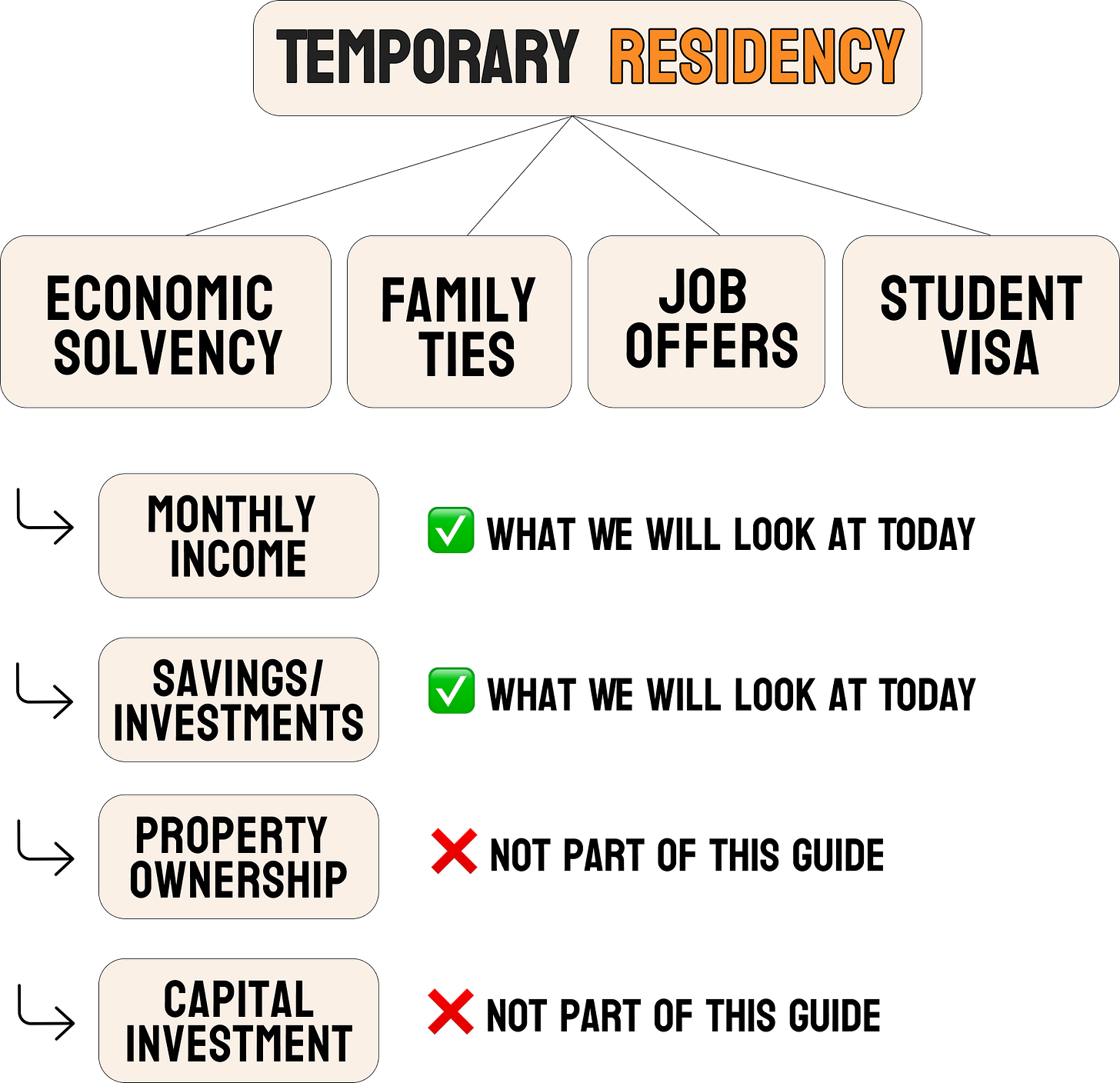 We’ll briefly mention the other routes, but the deep dive covers what will matter for most people, which is proving you can support yourself financially.